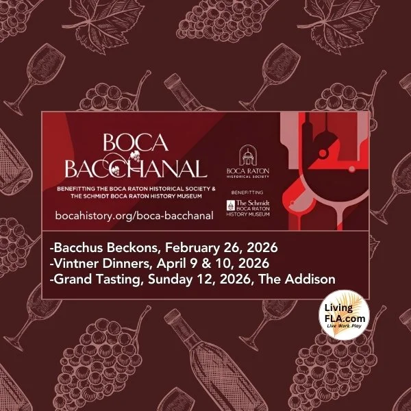 Celebrate the 23rd Annual Boca Bacchanal, Boca Raton’s iconic wine and food festival that brings together talented chefs, acclaimed vintners, and passionate food lovers for an unforgettable weekend! This beloved community tradition supports the heritage education and historic preservation initiatives of the Boca Raton Historical Society, offering the perfect blend of indulgence and impact.